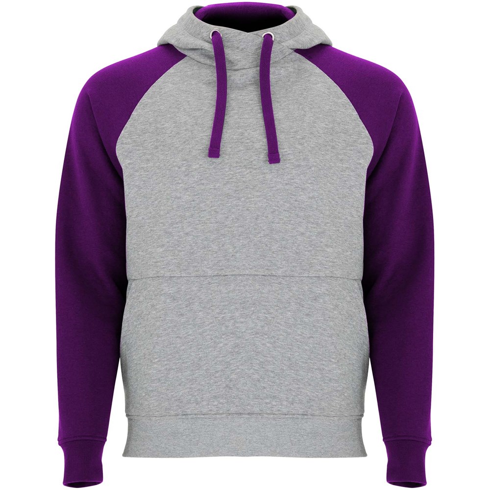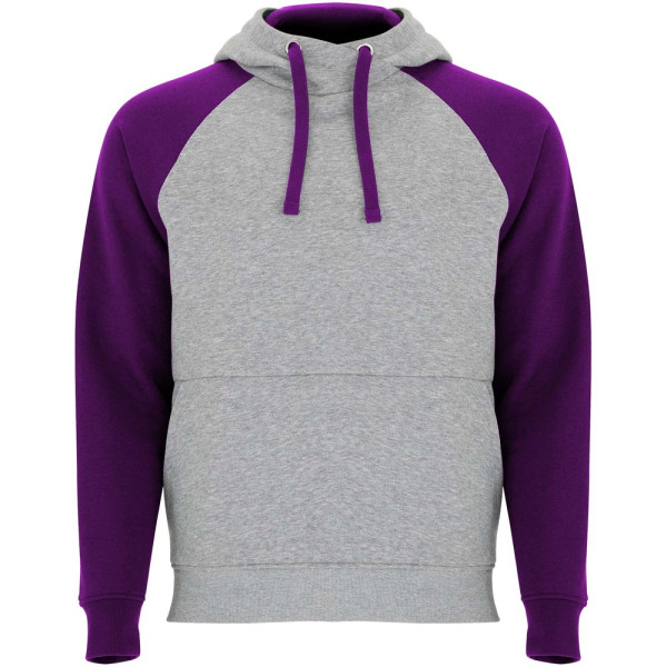 Zweifarbiger Unisex Kapuzenpulli. Kapuze mit gekreuztem Kragen und Metallösen. Innenkapuze, Kordelzug und Raglanärmel in Kontrastfarbe. Kängurutasche. Bündchen und Saum aus elastischem 1×1-Rippstrick. Abnehmbares Etikett.