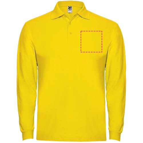Langärmeliges Poloshirt mit geripptem Kragen und Ärmelbündchen, 3er-Knopfleiste und 1×1-Rippstrickbündchen an den Ärmeln. Verstärkte und verdeckte Nähte am Kragen. Optionale Tasche. Herausnehmbares Etikett. Das Modell ist 190 cm groß und trägt Größe L.
