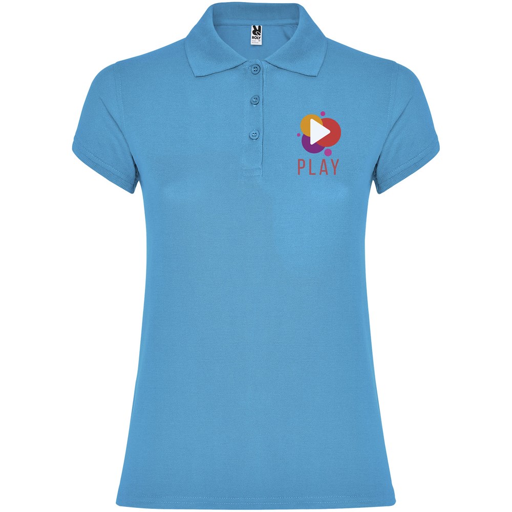 Kurzärmeliges Poloshirt für Damen. Verstärkte und verdeckte Nähte am Innenkragen. 1x1 Rippstrickbündchen an Ärmeln und Kragen. Seitennähte. 3-Knopfleiste und Seitenschlitze. Optionale Tasche. Herausnehmbares Etikett. Das Modell ist 179 cm groß und trägt Größe S.
