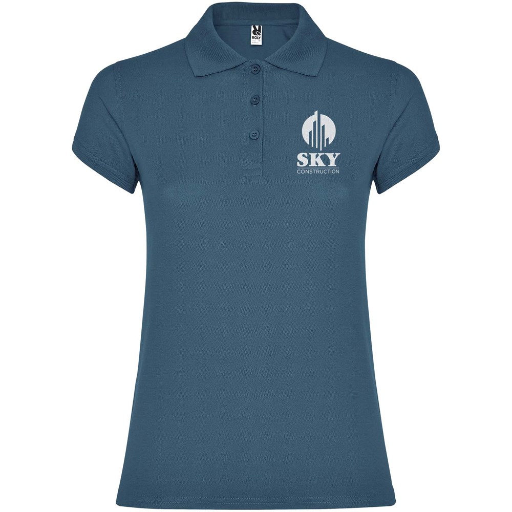 Kurzärmeliges Poloshirt für Damen. Verstärkte und verdeckte Nähte am Innenkragen. 1x1 Rippstrickbündchen an Ärmeln und Kragen. Seitennähte. 3-Knopfleiste und Seitenschlitze. Optionale Tasche. Herausnehmbares Etikett. Das Modell ist 179 cm groß und trägt Größe S.
