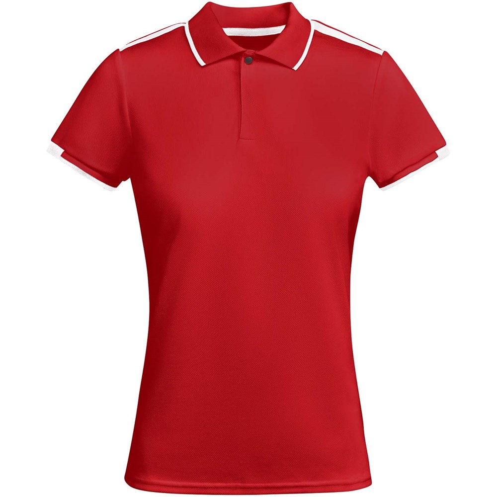 Antibakterieller Stoff aus recyceltem Polyester. 1x1-Rippstrick am Kragen und Details an den Ärmeln. Verstärkte, verdeckte Nähte am Kragen. Knopfleiste mit 2 verdeckten Druckknöpfen. Details und Schulterpartien in Kontrastfarbe. Seitenschlitze am Saum. Körperbetont. Abnehmbares Etikett.