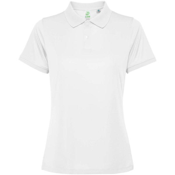 Kurzärmeliges, tailliertes Poloshirt für Damen. Verstärkte und verdeckte Nähte am Innenkragen. 1×1-Rippstrick an Bündchen und Kragen. Seitennähte. Knopfleiste mit 3 Knöpfen und Seitenschlitze.
