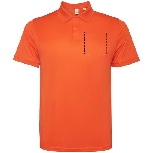 Kurzärmeliges Poloshirt für Herren. Verstärkte und verdeckte Nähte am Innenkragen. 1×1-Rippstrick an Bündchen und Kragen. Seitennähte. Knopfleiste mit 3 Knöpfen und Seitenschlitze.