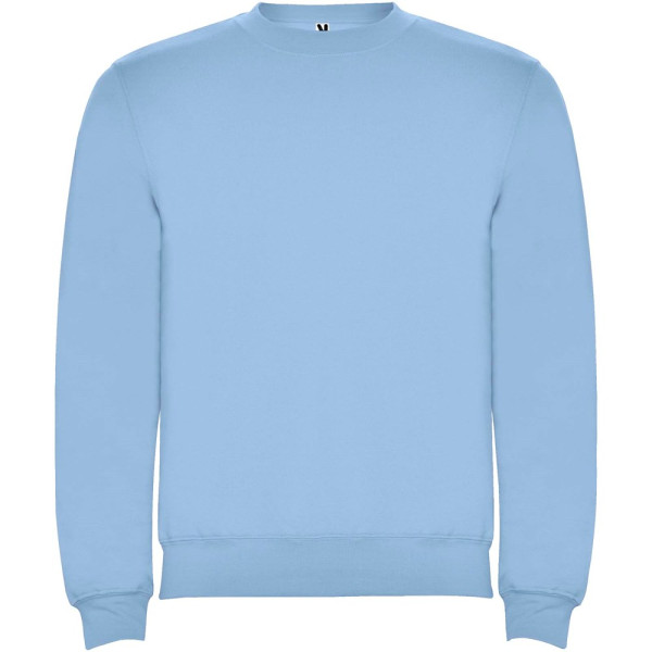 Klassisches Sweatshirt mit 1×1 Elastanripp an Kragen, Ärmelbündchen und Bund. Verstärkte und verdeckte Nähte am Kragen. Herausnehmbares Etikett.