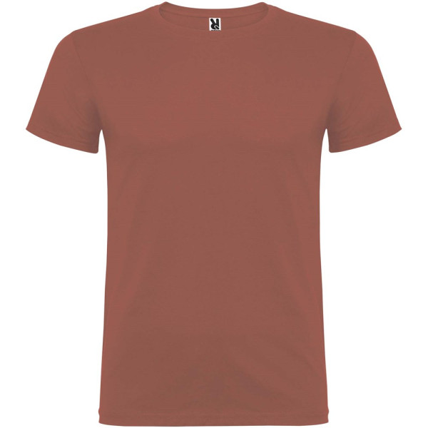 Kurzärmeliges T-Shirt mit doppellagigem Rundhalsausschnitt aus Elasthan, hergestellt aus mit Seitennähten. Verstärkte und verdeckte Nähte am Kragen. Herausnehmbares Etikett. Das Modell ist 120 cm groß und trägt Größe 5/6.
