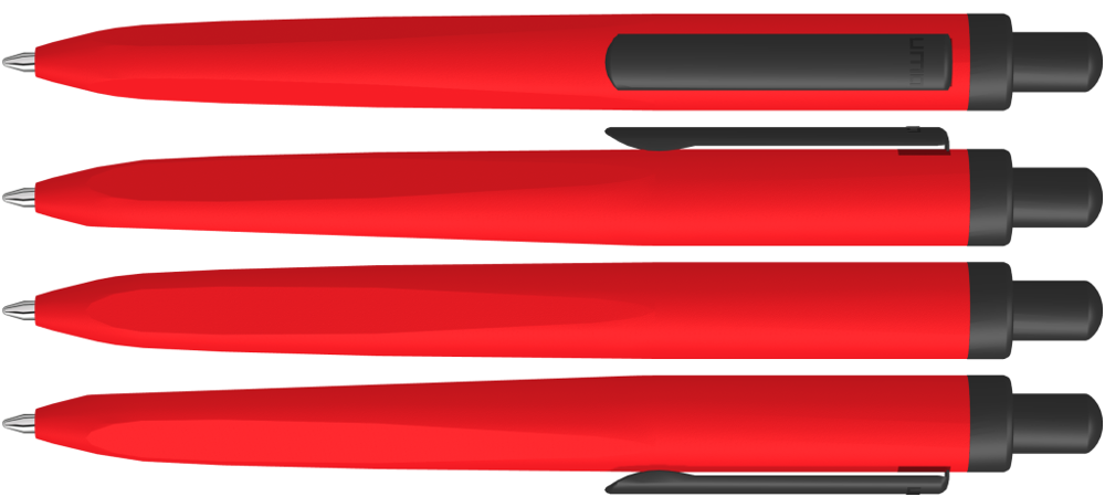 Metall-Druckkugelschreiber mit gemetrisch wechselnder Schaftform, die sich zur Schreibspitze hin in eine prägnante Dreikantgeometrie verjüngt. Aluminiumgehäuse matt lackiert, Clip und Drücker in schwarz matt.