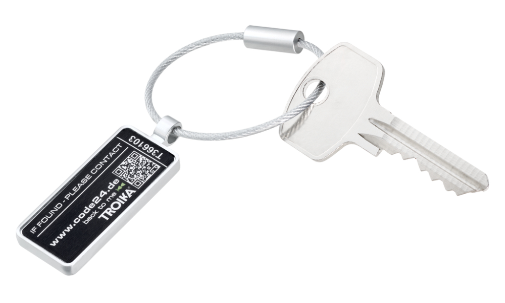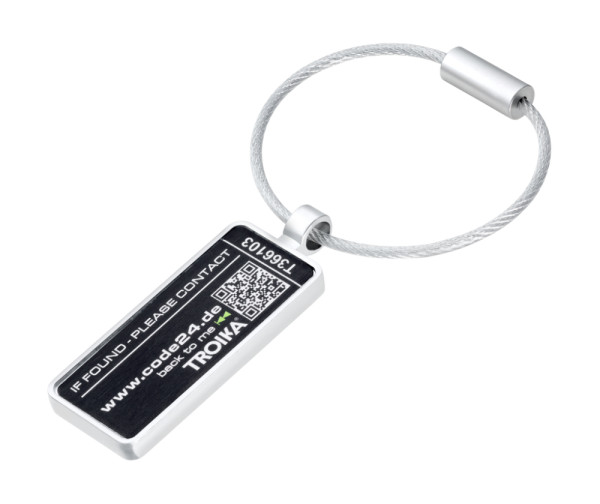 Taschen- und Gepäckanhänger mit Lost and Found Service, zum einfachen Befestigen an Koffern, Rucksäcken, Taschen, erschwert den Diebstahl, mit Drahtschlaufe, inklusive 2 Jahre kostenlosem Fundservice nach Registrierung, Metallguss, verchromt, matt, silberfarben