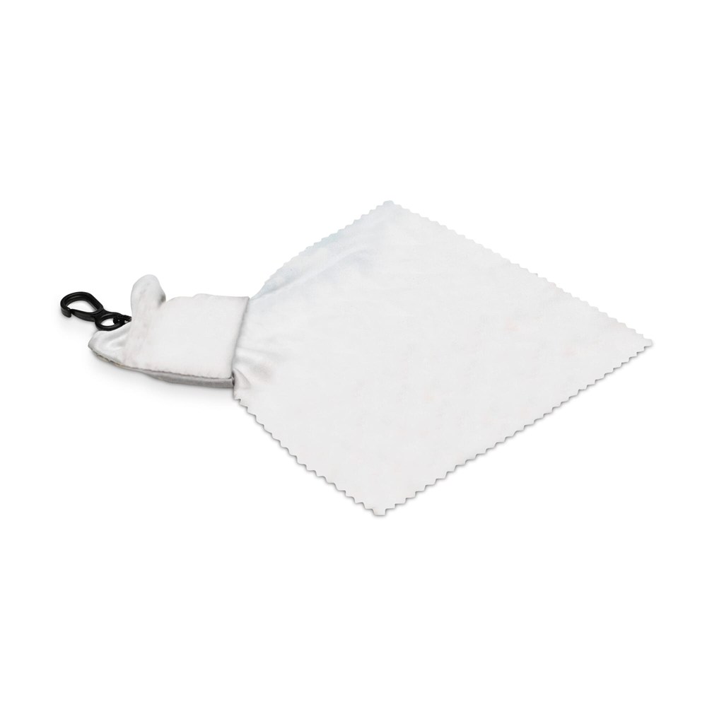 Schlüsselanhänger mit Mikrofaserreinigungstuch für Displays oder Brillen. Inkl. einem vollfarbigen All-Over-Druck. Einzeln verpackt im Polybeutel.