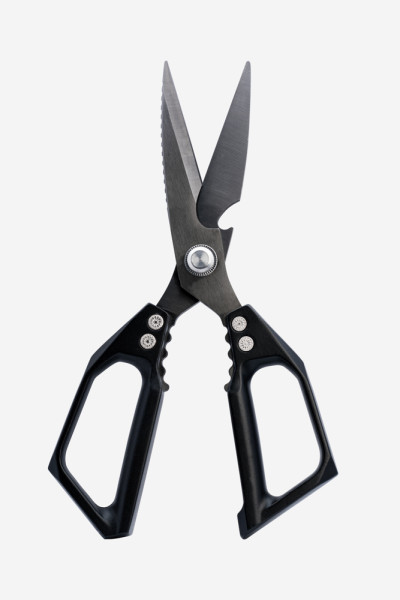 Schneidet, knackt, öffnet, schuppt und vieles mehr. Universalschere aus brüniertem SK5- Stahl,... mehr
