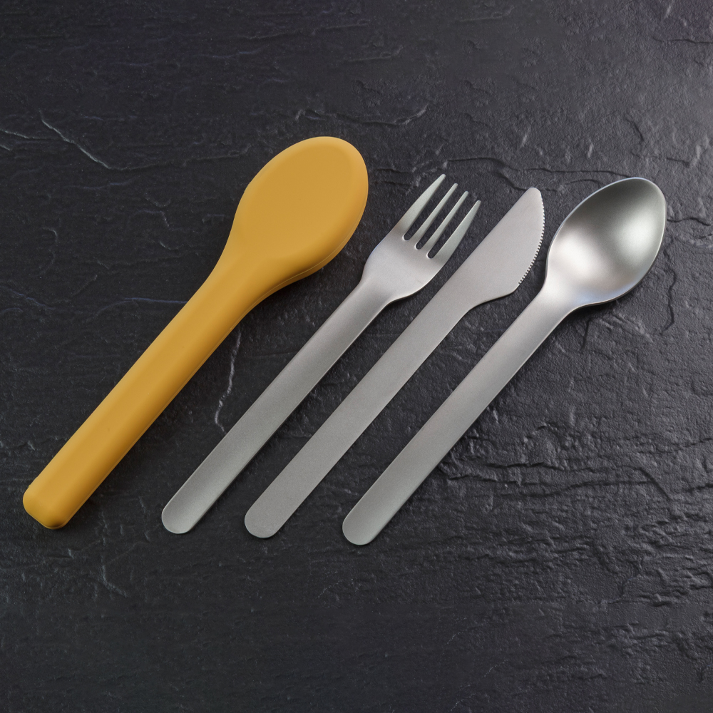 Praktisch, robust und umweltbewusst – das Reisebesteckset Jens ist dein idealer Begleiter für unterwegs. Ob im Büro, beim Picknick oder auf Reisen: Das Set aus rostfreiem Edelstahl (304/420) mit Gabel, Löffel und Messer liegt sicher in der Hand und ist durch die rutschfeste Silikonhülle hygienisch verpackt. Inklusive passender Transportbox – leicht, kompakt und wiederverwendbar. Verfügbar in drei modernen Farben: Rot, Blau und Gelb.