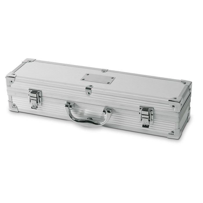 Aluminiumkoffer mit 3 BBQ Accessoires aus rostfreiem Edelstahl.