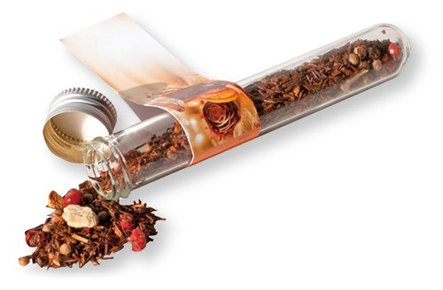 Das Reagenzglas ist eine pfiffige Idee Tee zu verpacken. Mit dem Schraubdeckel kann es immer wieder neu gefüllt werden. Platz für den Werbedruck ist auf dem Standardmotiv des Fähnchens oder eine eigene Gestaltung, jeweils bereits ab 250 Stück.
