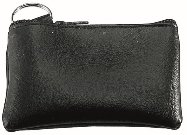 Gut verarbeitete PU-Schlüsseltasche in klassisch schwarzer Optik mit Nylonreißverschluss.