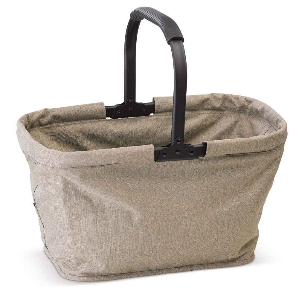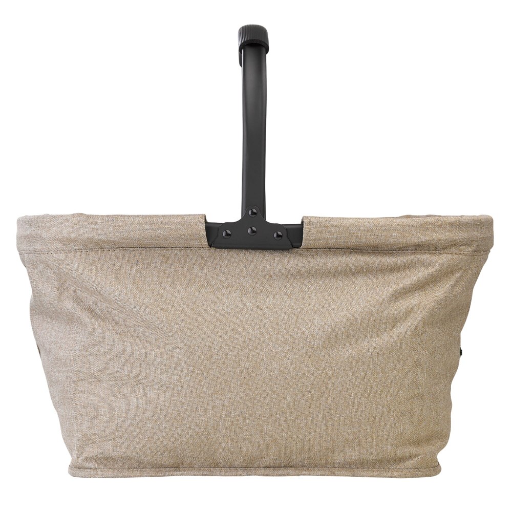 Stilvoll und praktisch - faltbarer Einkaufskorb aus hochwertigem 600D-Polyester. Das Melange-Material und die schwarzen Griffe verleihen ihm einen edlen Look. Der Griff ist für maximalen Komfort mit weichem Schaumstoff überzogen. Auf der Vorderseite ist eine Tasche mit Reißverschluss zu finden.