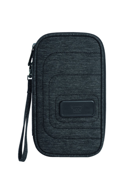 Organizer-Mappe mit zwei Reißverschluss-Hauptfächern; abnehmbare Tragelasche; diverse Reißverschluss- und Netztaschen; diverse Einsteckfächer; elastisches Befestigungsraster