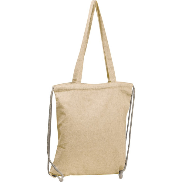 Recycelte Materialien: Die Tasche besteht aus recycelter Baumwolle, was zur Wiederverwendung wertvoller Rohstoffe beiträgt.