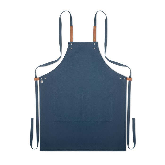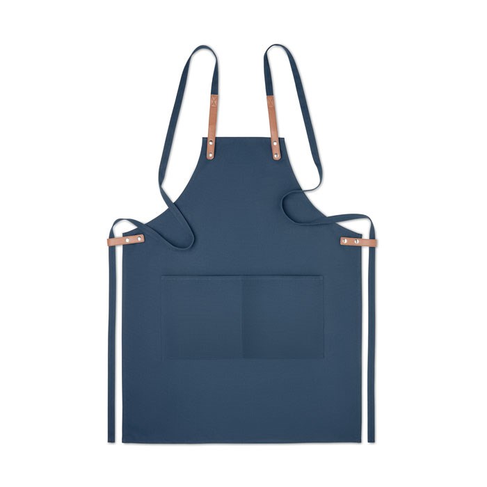 Küchenschürze mit verstellbarem Nackengurt und 2 Fronttaschen aus 340 g/m² Organic Cotton/Leinen. Lieferung in individuellem Karton.
