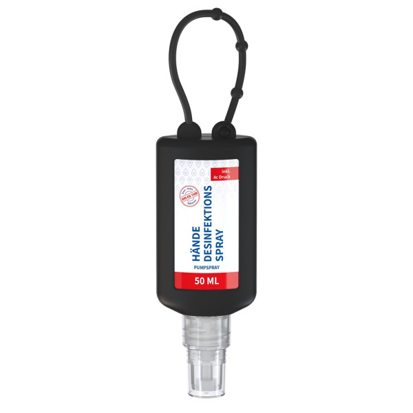 Hände-Desinfektionsspray (DIN EN 1500), 50 ml Bumper schwarz, Body Label (R-PET)
